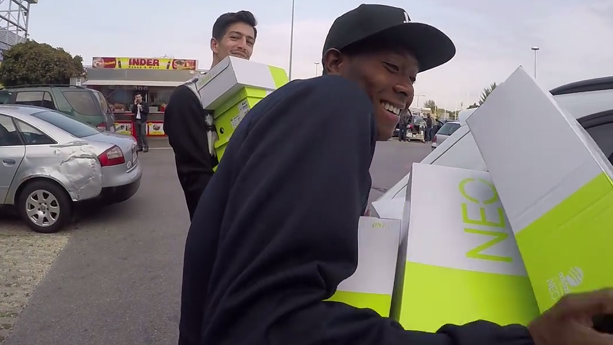 O jogador austríaco, cuja mãe emigrou das Filipinas e o pai da Nigéria, comprou dezenas de sapatos e foi entregar pessoalmente em um centro de refugiados. Cedeu autógrafos, tirou fotos e fez o dia da criançada muito mais feliz.