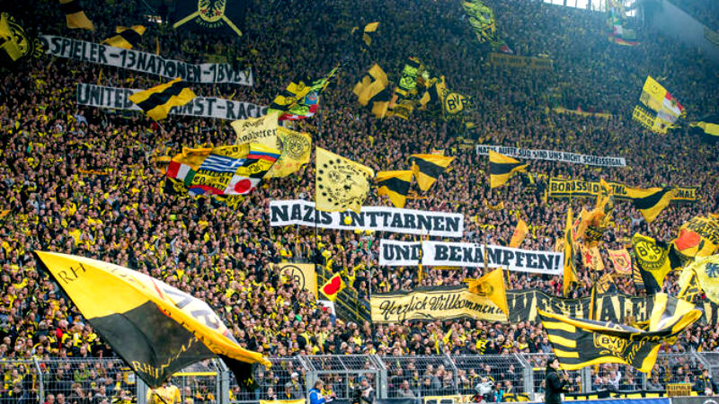 Vale ressaltar que o Borussia Dortmund possui uma atuação marcante junto à questão migratória. Assim como vários outros clubes da Bundesliga, os aurinegros lançaram ações relacionadas à crise de refugiados vivida na Europa, buscando integrá-los na comunidade local através do futebol. o Dortmund foi justamente o clube com maior penetração na antiga Alemanha Oriental, conforme pesquisa de 2012.