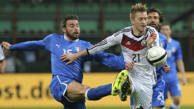O jogo entre Itália e Alemanha no San Siro, em si, não foi lá grande coisa. As equipes empataram em 1 a 1, com gols marcados por defensores (Mats Hummels e Ignazio Abate) ainda nos 30 minutos iniciais, e poucas chances foram criadas durante todo o jogo. O que mais chamou atenção mesmo, e causou lamentação nos mais tradicionalistas, foi ver italianos todos de azul e alemães todos de branco. Já reclamamos disso aqui na Trivela e acho que não nos acostumaremos tão cedo. Ou nunca nos acostumaremos. Onde estavam os calções brancos da Azzurra e os pretos da Nationalmannschaft, cazzo?