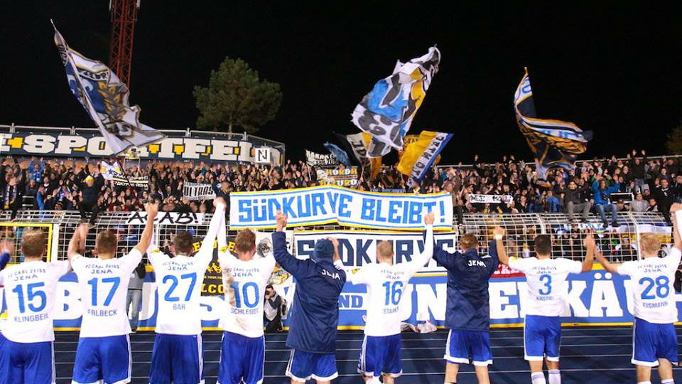 Porém, no meio de todas essas idas e vindas da história, uma coisa quase nunca mudou: a torcida do Carl Zeiss sempre se posicionou na curva sul do estádio, a Südkurve. De acordo com os próprios torcedores, é ali que o coração do time bate, impulsionado mais recentemente pelos ultras da Horda-Azzuro, torcida organizada fundada em 2001. “A Südkurve é uma tradição, é onde a torcida do FCC está. E no último ano teve uma importância ainda maior. Se tornou uma marca registrada do clube. Algo único e de grande valor para nós”, afirma Clemens Vöckler, assessor de imprensa do movimento CrowdFANding.