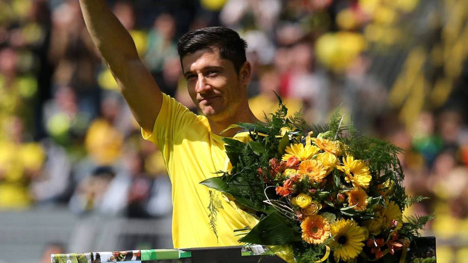Lewandowski fez seu último jogo no Signal Iduna Park neste sábado. Passou em branco na vitória por 3 a 2 sobre o Hoffenheim, mas recebeu uma enorme homenagem da massa amarela que lotou as arquibancadas. Afinal, 101 gols e 44 assistências em 185 jogos precisam ser respeitados, principalmente aqueles que ajudaram na conquista do bicampeonato alemão e na campanha até a final da Liga dos Campeões.