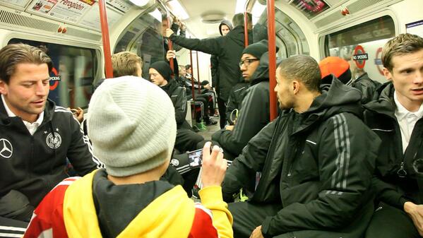 Naturalmente, os jogadores assinaram alguns autógrafos e foram alvos de fotos de passageiros, surpresos com a invasão de figuras ilustres nos seus cotidianos. “É sempre bom para os jogadores ter um pouco de normalidade. Foi tudo muito tranquilo, os ingleses são educados”, contou Bierhoff. Pelas imagens divulgadas em um vídeo no site da federação alemã, os jogadores levaram em conta o vão entre a plataforma e o trem.