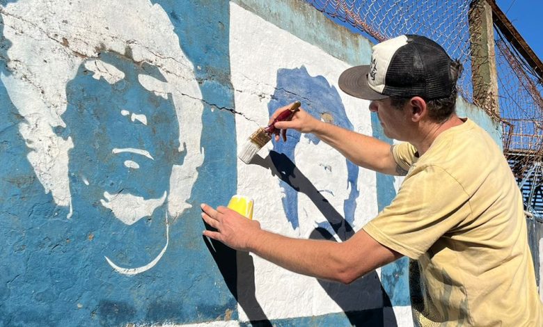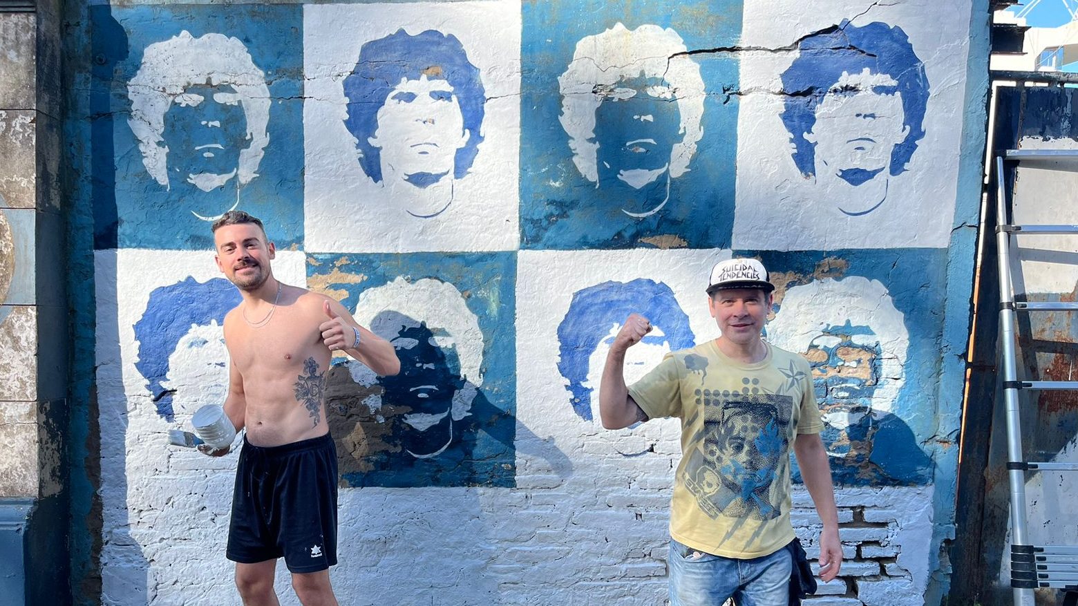 Em uma linda tarde de sol em La Plata, Arnold e Marcos Zucchi retocam, com tinta que compraram e trouxeram de casa, um dos murais com o rosto de Diego Armando Maradona no Estádio Juan Carmelo Zerillo, que completa 100 anos na próxima sexta-feira (26). Com orgulho, os irmãos relembram que a arte deles foi a primeira das muitas que se sucederam depois que o ídolo do futebol argentino foi anunciado como técnico do Gimnasia y Esgrima, em 5 de setembro de 2019, para aquele que seria o último trabalho de sua carreira.