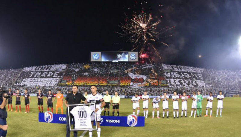 Era claramente uma noite de festa no Defensores del Chaco. Acumulando nove pontos de vantagem sobre o Cerro Porteño, o Olimpia só precisava de um empate para confirmar matematicamente a conquista. No entanto, os franjeados ofereceram mais aos seus torcedores. A entrada em campo contou com cenas fantásticas, entre o mosaico feito no setor principal das tribunas, o bandeirão estendido atrás de um dos gols e o foguetório que tomou os céus. Além disso, também rolou uma homenagem a Roque Santa Cruz, completando 100 jogos pelo clube de coração, e pronto para voltar a faturar o título nacional após 19 anos, após emendar o tricampeonato entre 1997 e 1999. Não à toa, o veterano estava representado até mesmo no mosaico. A quem esteve a ponto de deixar o clube neste retorno, a permanência se pagou da melhor maneira.