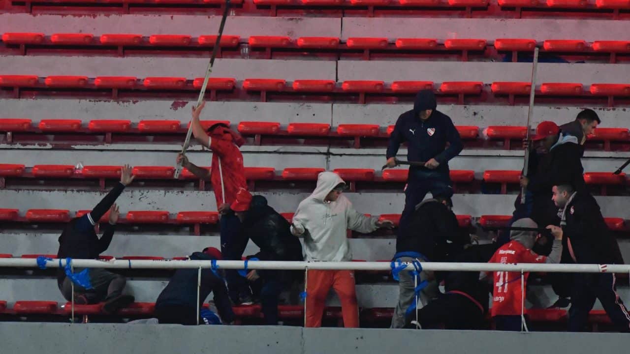 Os primeiros atos de vandalismo partiram da torcida visitante, sendo posteriormente revidados por torcedores do Independiente, que invadiram o setor destinado à Universidad de Chile.