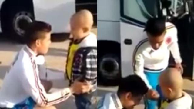 A cena fugiu ao protocolo tradicional de segurança da seleção da Colômbia. Afinal, a ocasião era especial. Tomás Porras é um menino colombiano que vive no Chile. Mas não porque quer, e sim porque precisa. Tratando de um câncer, o garotinho está hospitalizado no país. E aproveitou a ocasião da Copa América para realizar o seu sonho: conhecer James Rodríguez, a quem sonha ser algum dia.