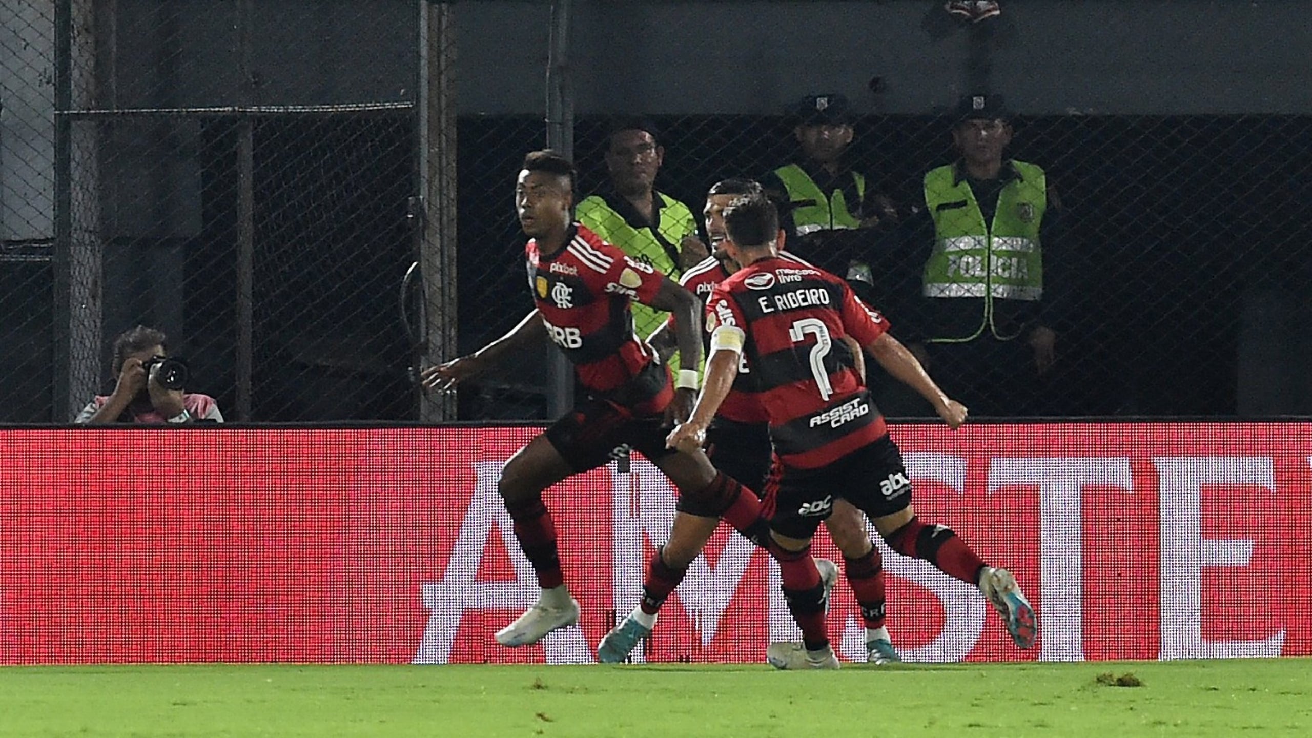 O primeiro tempo de Flamengo e Olimpia começou frenético, totalmente à altura do clássico que esperava os mais de 40 mil torcedores no Defensores Del Chaco. Bruno Henrique, que havia marcado o gol solitário do Rubro-Negro na ida, voltou a atacar na jogada aérea e completou cruzamento de Arrascaeta para abrir o placar. O camisa 27 balançou as redes nos dois jogos de uma eliminatória pela primeira vez desde a semifinal de 2021, contra o Barcelona de Guayaquil.