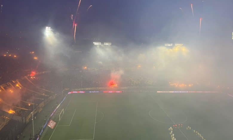 Recebimento ABSURDO da torcida do Peñarol no Campeón Del Siglo. Digno de uma noite de Libertadores raiz. Foi tanto sinalizador que ficamos sem ver nada depois.