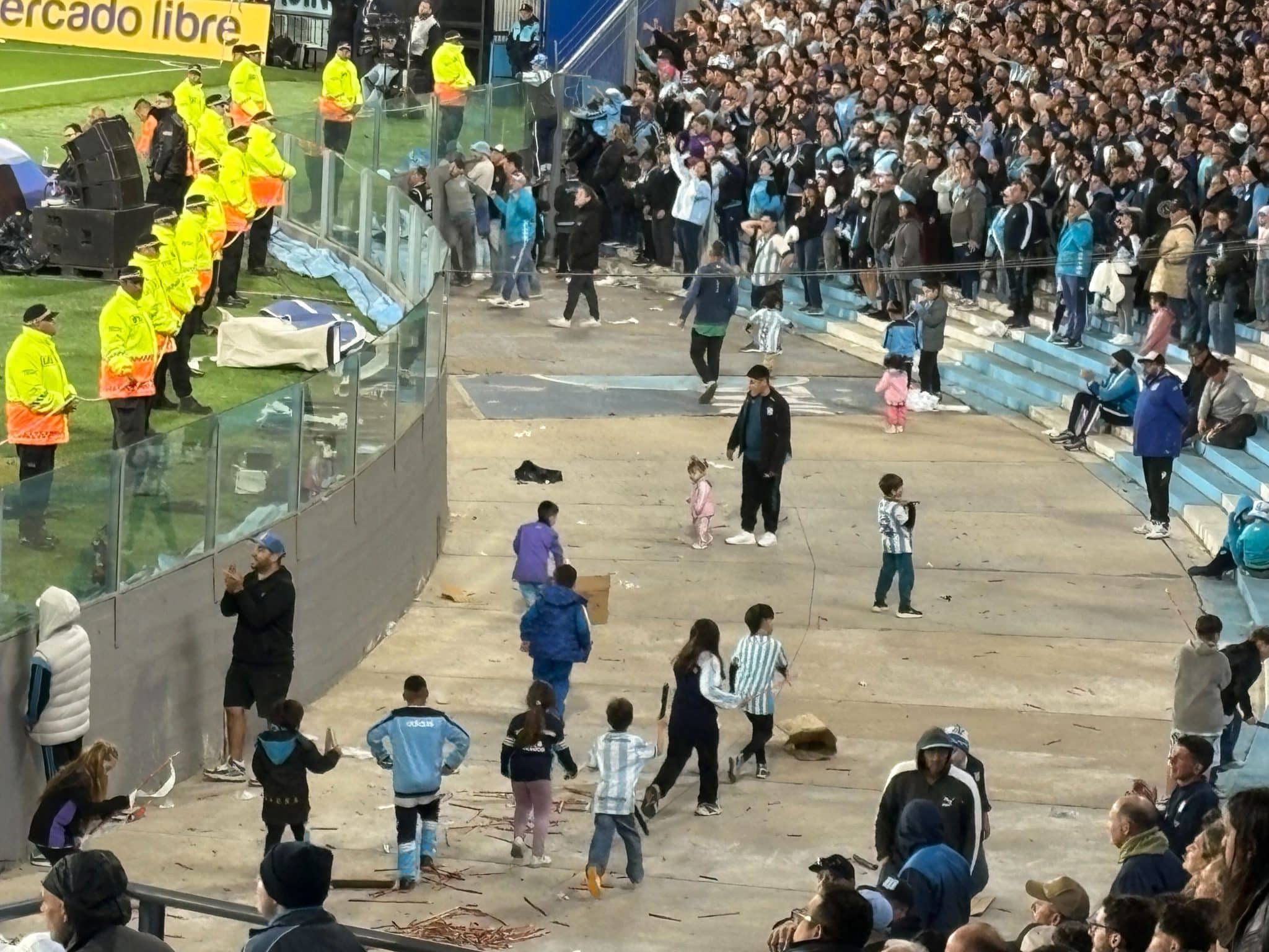 Apesar do atraso e do clima frio na capital argentina, com os termômetros na casa dos 14 graus, o estádio do Racing era um caldeirão. Enquanto o jogo oficial não começava, crianças utilizavam as partes baixas da arquibancada para jogar “la pelota”. Na parte mais alta, a torcida do Racing cantava para tentar esquentar, enquanto os Rubro-Negros não ficavam atrás e respondiam à altura.