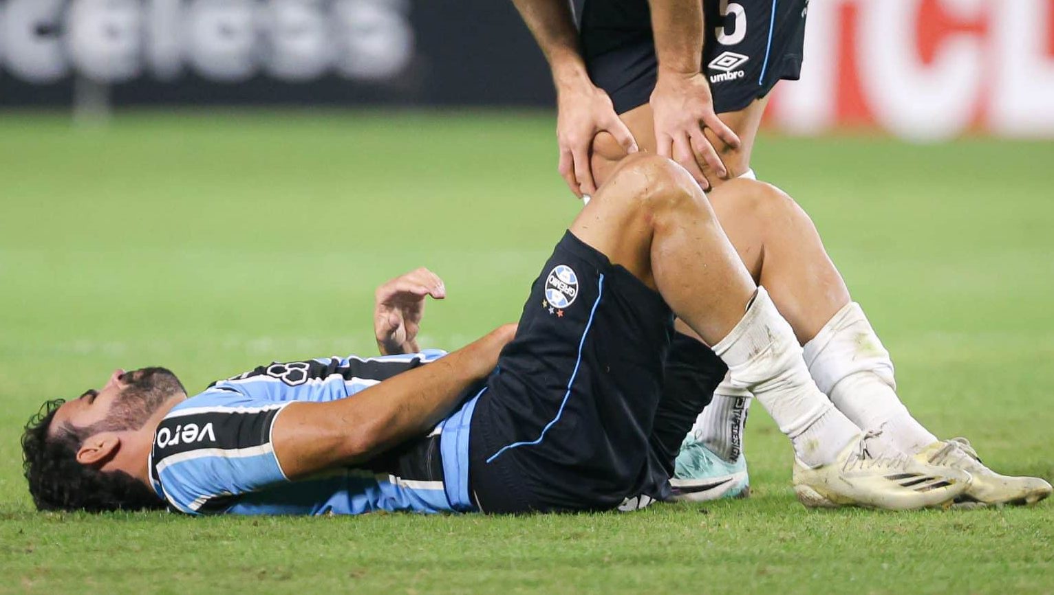 Mas o começo de segundo tempo não foi somente de notícias boas para o Grêmio. Aos sete minutos, Diego Costa caiu no gramado com dores no músculo adutor da coxa esquerda, e pediu para ser substituído imediatamente.