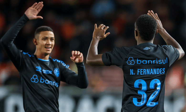 Formados nas categorias de base do Grêmio, Gustavo Nunes e Nathan Fernandes construíram o gol da vitória sobre o Estudiantes
