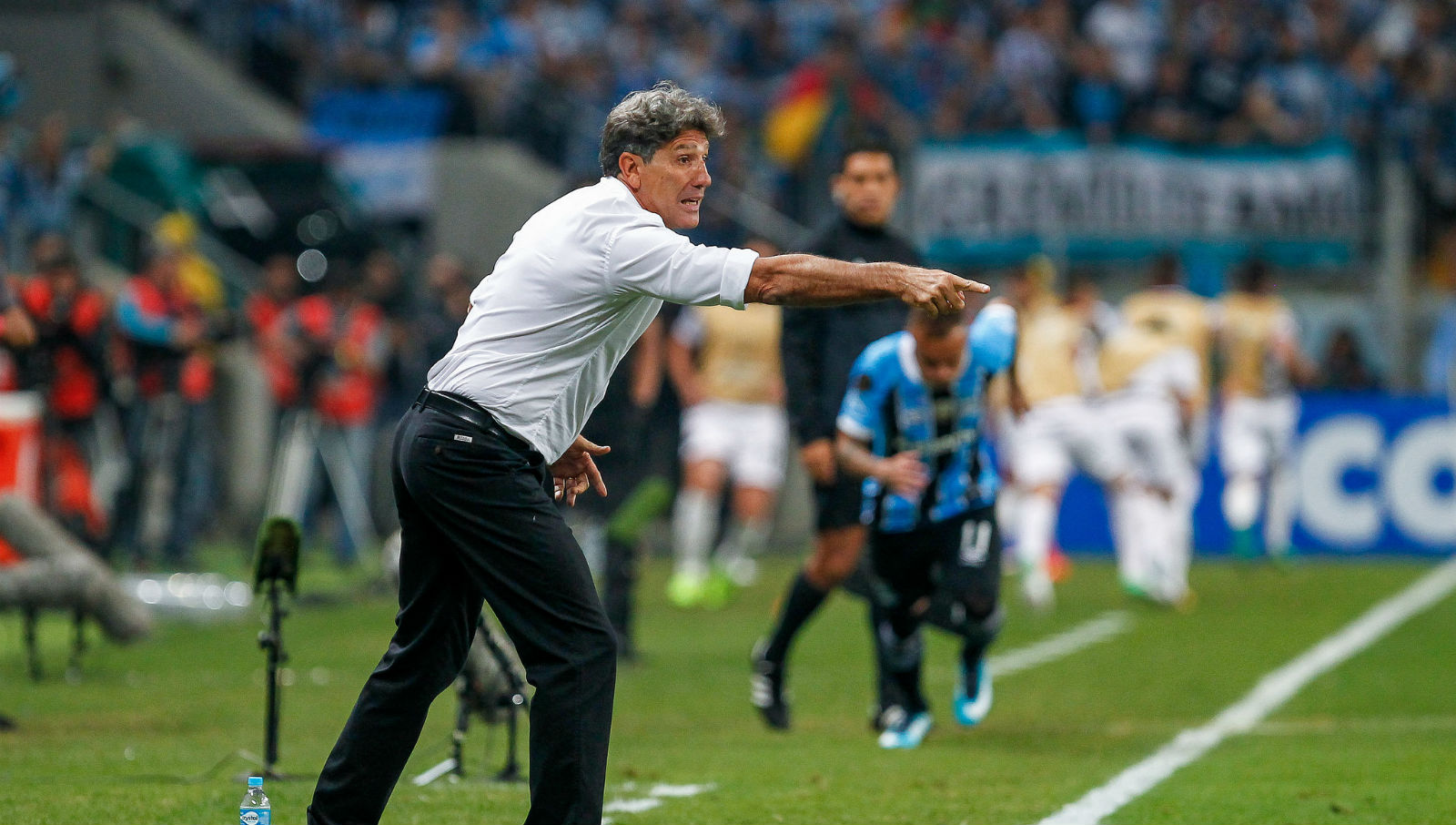A concentração do Grêmio se via desde a entrada dos times em campo. Via-se a partir daquilo que acontecia nas arquibancadas. A Arena é diferente do velho Olímpico. Ainda assim, proporcionou uma recepção trepidante aos gremistas. Pulsou entre bobinas, fogos de artifício e fumaças, nas três cores que regiam Porto Alegre nesta quarta. A área da Geral, sobretudo, era a que melhor lembrava as melhores festas da antiga casa. Da Libertadores de sempre.