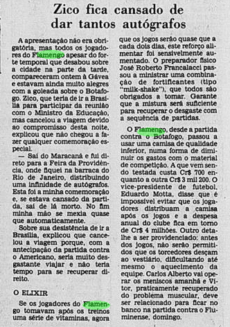 O dia em que o Cobreloa chegou ao Rio de Janeiro. Os chilenos nem ficaram no hotel. Durante a noite, foram ao Maracanã assistir ao Flamengo x Americano. Viram um baile dos rubro-negros, com mais um 6 a 1. Adílio e Nunes fizeram dois gols cada, enquanto Zico foi poupado, substituído no intervalo.