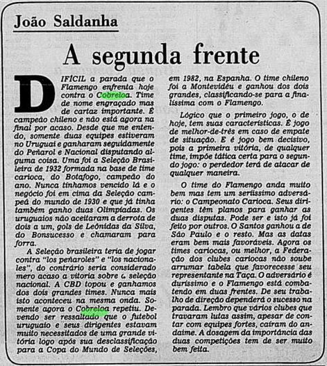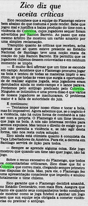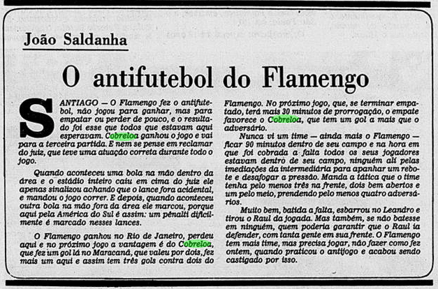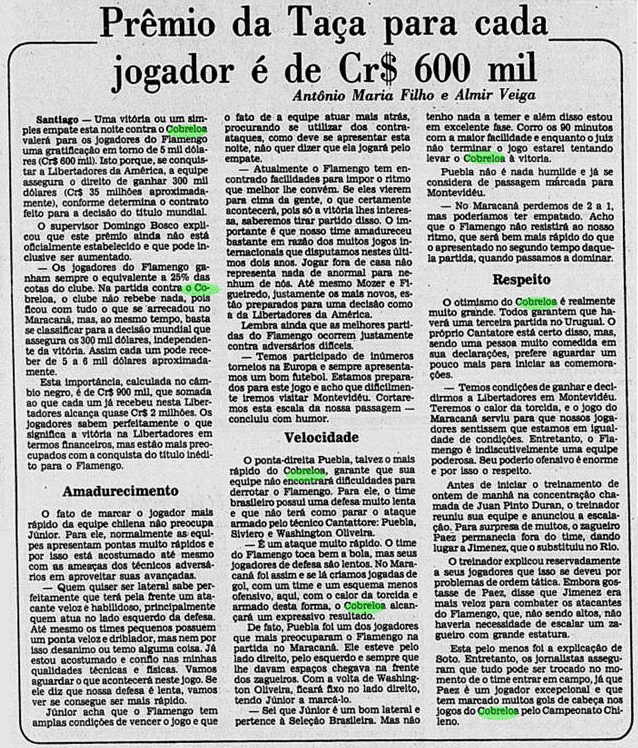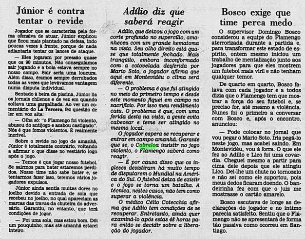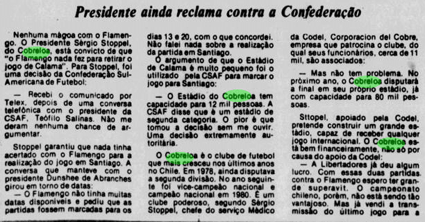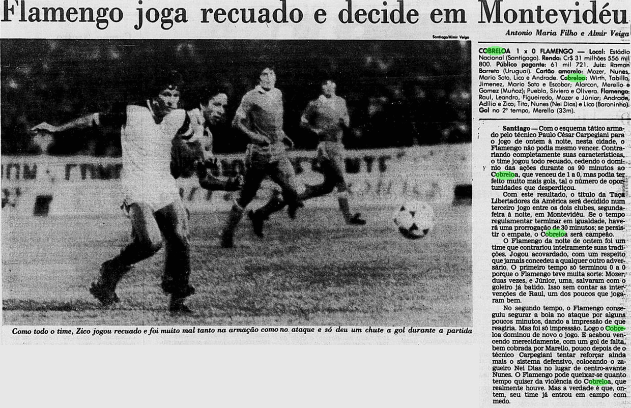 Pegando os recortes dos jornais de 1981, reconstruímos o clima ao redor do Flamengo antes e depois dos jogos decisivos contra o Cobreloa