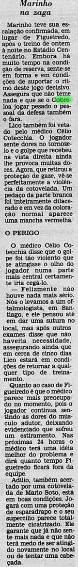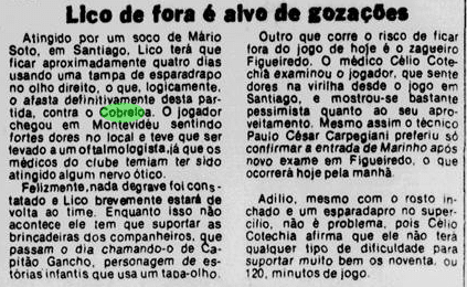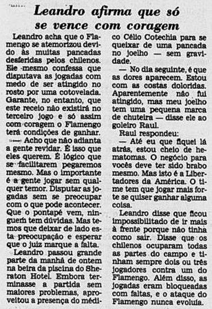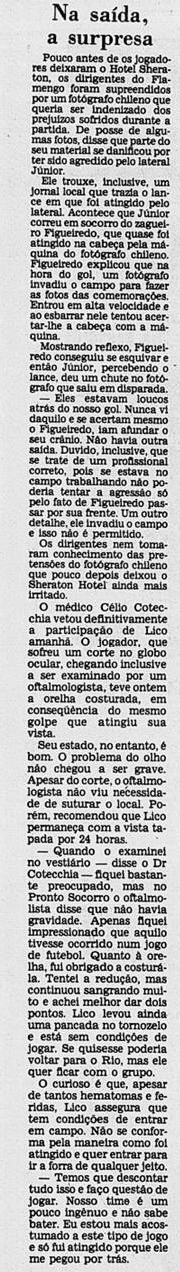 Um dia mais parado, de preparação a ambas as equipes. O Cobreloa contava vantagem sobre a sua força em Santiago, esperando o apoio da torcida chilena no Estádio Nacional. Já entre os rubro-negros, o destaque era Lico, que vivia uma fase exuberante naquele momento decisivo.