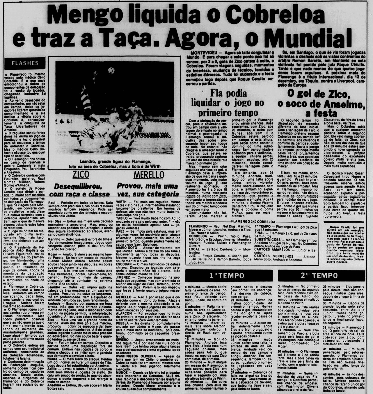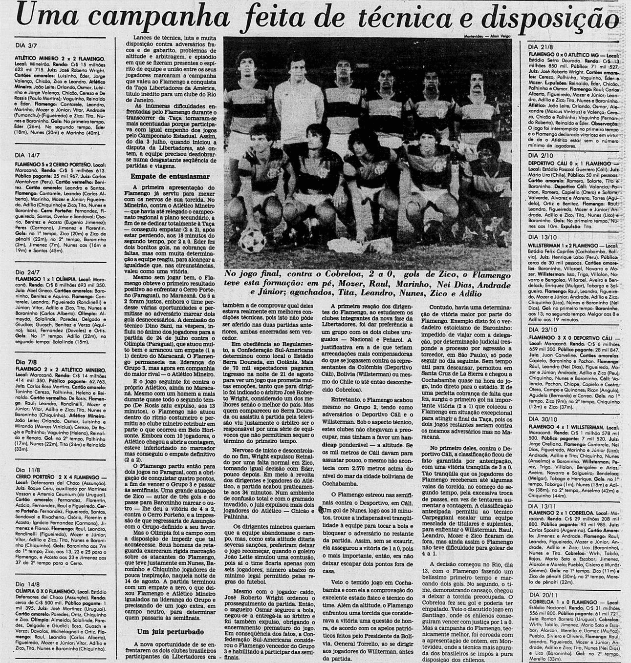 O dia da consagração em Montevidéu. O Flamengo encarou o Cobreloa com sangue nos olhos, e não apenas para construir a vitória por 2 a 0, que garantiu o inédito título da Libertadores.
