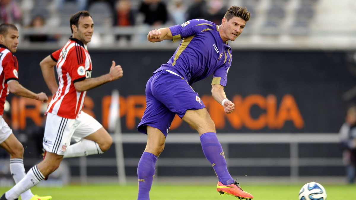 Mario Gomez fazendo gol pela Fiorentina jogando na Argentina é dessas cenas divertidas