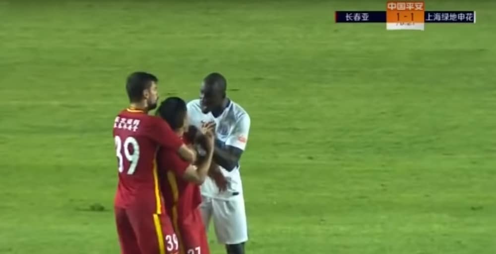 Demba Ba havia feito uma falta em outro adversário, quando Li o encarou pela primeira vez. A infração foi cobrada e o lance seguiu, mas a partida precisou ser paralisada porque o centroavante pegava o adversário pelo colarinho da camisa, no meio do campo. A reação explicita bastante a revolta do atacante, acusando o camisa 27 de fazer comentários pejorativos sobre a cor de sua pele. O veterano foi contido pelos companheiros e o nigeriano Odion Ighalo, jogador do Yatai, passou alguns minutos conversando com o senegalês. Li recebeu apenas o cartão amarelo.