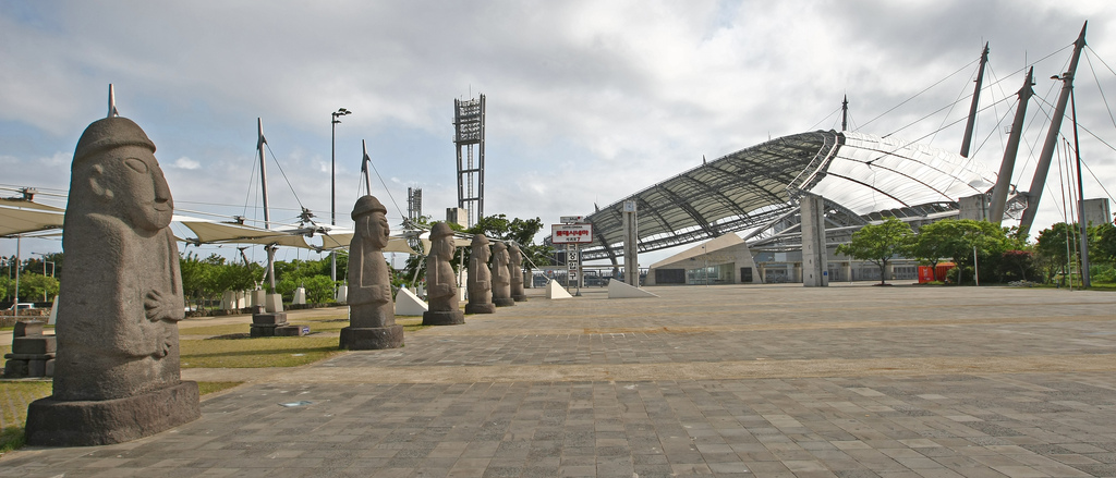 O estádio foi construído na parte menos povoada da ilha, a cidade de Seogwipo, com 155 mil habitantes. Foram apenas três jogos da Copa no local: Brasil 4×0 China, Eslovênia 1×3 Paraguai e Alemanha 1×0 Paraguai. O suficiente para garantir alguns milhares de turistas, exposição ao turismo local, a presença dos dois finalistas no início de suas campanhas. Benefícios imediatos, mas nada a longo prazo. O estádio não foi dos mais caros, custando US$ 120 milhões, e estruturas temporárias permitiram que sua capacidade fosse reduzida de 42 mil espectadores para 35 mil, diminuindo também os gastos da manutenção. Ainda assim, o ônus era todo do governo da província de Jeju, que já tinha bancado as obras. Sem um clube que o utilizasse, o estádio não passava de um enfeite na bela paisagem da ilha.