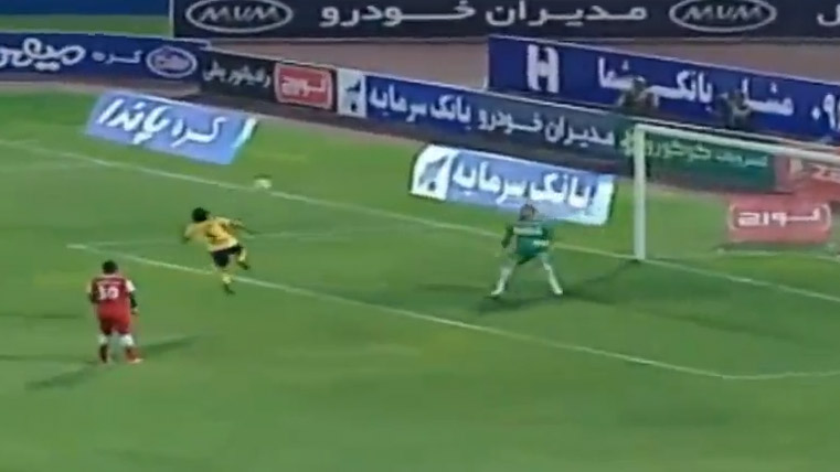Uma bola chutada ao gol despretensiosamente quase encobriu o goleiro, mas bateu no travessão. O rebote caiu na cabeça do zagueiro Mohsen Irannejad, que tentou recuar para o seu arqueiro e o fez um pouquinho forte demais. O camisa 1 ainda chegou a desviar antes de ver a bola descansar na lateral da rede.