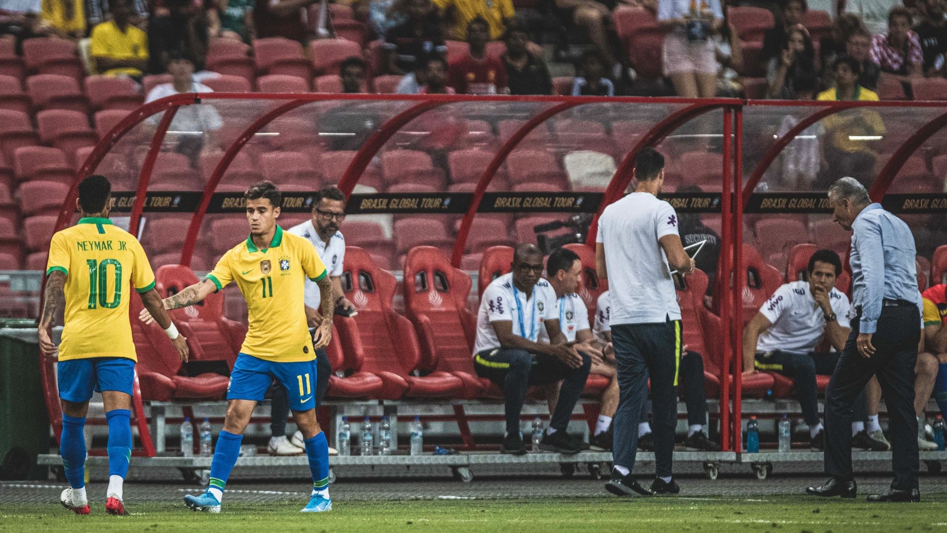 O amistoso em Singapura teve pouco mais de 20 mil pessoas, muito menos que a capacidade do estádio, de 55 mil. Um festival de lugares vazios, mesmo com a organização do jogo tendo diminuído o preço do ingresso em relação ao jogo de quinta-feira contra Senegal e ainda ter distribuído ingressos em escolas locais.