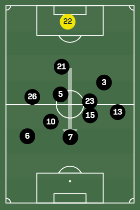 Além do destaque defensivo, Battaglia tem sido crucial na saída de jogo, como citado. Não à toa, a posição média dele no campo na partida contra o Sport foi como o primeiro homem de linha a frente do goleiro, jogando como o extinto líbero.