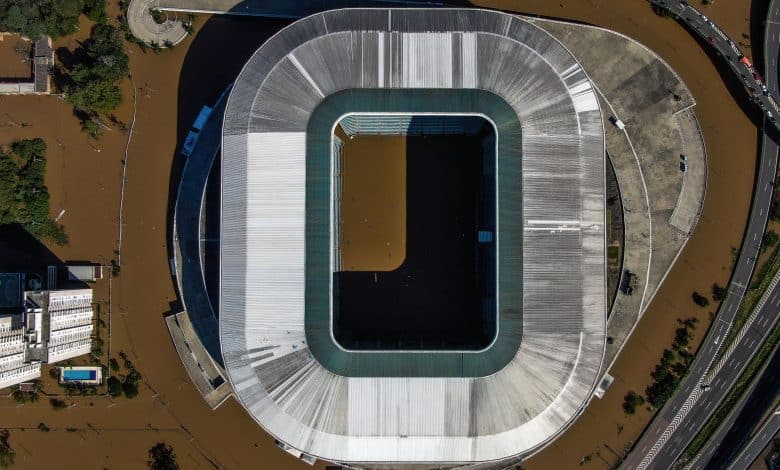 Esse período pode ser ainda maior. Tudo depende da avaliação que será feita após a água baixar totalmente e a limpeza dos estádios ser realizada. No Beira-Rio, a antiga grama de inverno — plantada semanas antes das fortes chuvas — não está mais submersa, mas está completamente danificada. Na Arena do Grêmio, o gramado ainda está alagado.