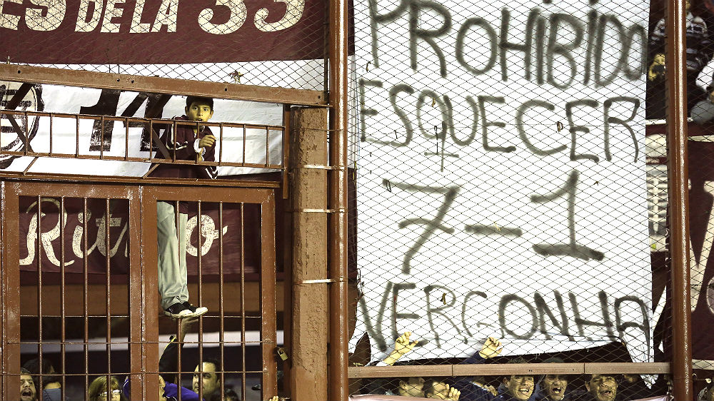 O impacto das duas últimas partidas da Seleção na Copa foi muito grande. O time jogou tão mal e articulou tão poucas jogadas que parecia que o futebol brasileiro havia desaprendido como se criar jogadas com técnica, toque de bola e habilidade. Tudo o que a Alemanha tinha de sobra para envolver o Brasil e meter aquela goleada de 7 a 1. Uma goleada que não será esquecida com facilidade, até porque os argentinos lembrarão sempre, como os torcedores do Lanús fizeram na partida de ida da Recopa contra o Atlético Mineiro nesta quarta (foto acima).