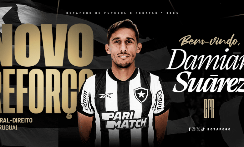 O Botafogo, enfim, tem um novo lateral-direito no elenco. Nesta sexta-feira, o Glorioso anunciou a contratação do uruguaio Damián Suárez, que estava no Getafe, da Espanha. O jogador, de 35 anos, assinou um acordo válido até o fim de 2025. Ele é o oitavo reforço contratado pelo Botafogo nesta janela de transferências.