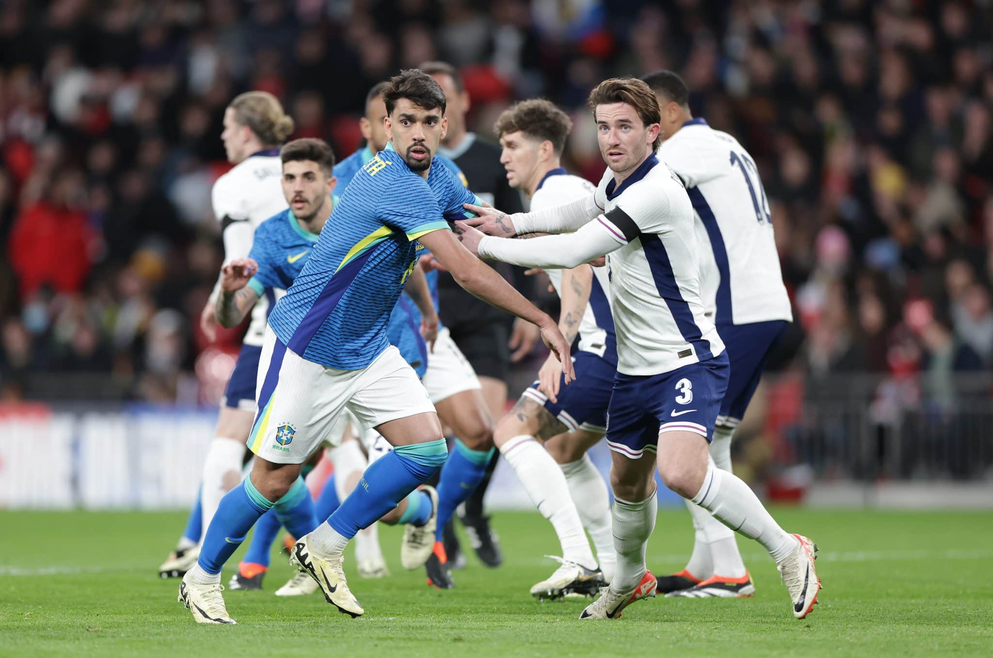 Bom, ao campo. Depois da rápida e meio inútil passagem de Fernando Diniz, Dorival armou em Wembley uma saída mais convencional, usando os laterais numa linha de quatro e os dois volantes buscando, fazendo parecer até um 4-2-4, a depender do balanço de Paquetá. Foi um jogo de muita organização e consistência, indispensáveis depois da loucura que foi o pós-Copa de dois interinos, dessa vez sem correr atrás do rival em momento algum. O próprio Paquetá, de volta ao time, foi o coração da seleção, se excedendo nas faltas, mas competindo e dando os tapas certos para chegar na frente. Inquieto, ofereceu um gol para Vini, bateu uma bola na trave, tirou tinta numa chapa de fora e pentelhou os ingleses o jogo todo. Fez muita falta em 2023.