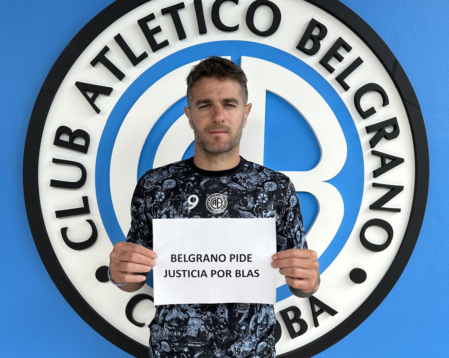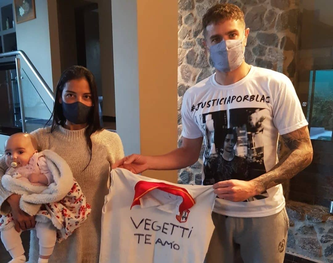 Desde 2020, essa cena e essa foto se repetem em todo o jogo de Vegetti. Assassinado pela polícia em Córdoba, Blas era torcedor do Belgrano e fã do atacante, então principal goleador do time argentino. A família do garoto entrou em contato com Vegetti e o jogador logo entrou na luta por justiça por Blas. Além dele, o próprio Belgrano também entrou na campanha cobrando punições aos responsáveis pelo crime.