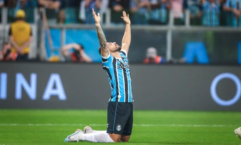 — Outro dia falei que ia colocar ele no Guinness. Aí ele falou ‘no Guinness, por quê?’. Falei ‘porque você está no Grêmio há sete meses, e você jogou mais jogos aqui do que na carreira toda’ — brincou Renato Portaluppi na entrevista coletiva após o jogo contra o Alviverde.