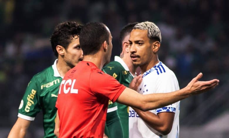 Durante e após a derrota do Cruzeiro para o Palmeiras, por 2 a 0, neste sábado (20), a equipe celeste ficou na bronca com o árbitro Davi de Oliveira Lacerda (ES) e o árbitro de vídeo Rodrigo Nunes de Sá (Fifa/RJ).