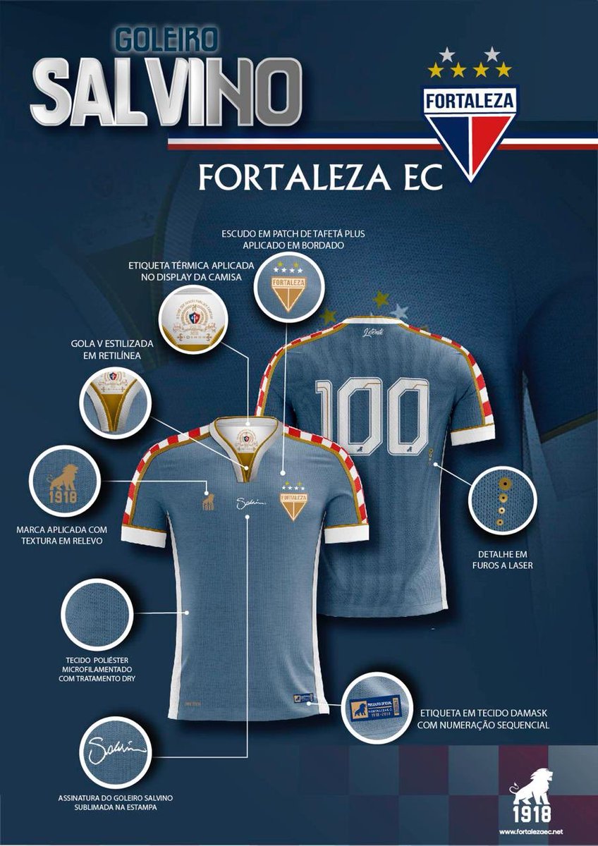 A comemoração de 100 anos do Fortaleza não poderia ser mais bem-vinda. Em uma temporada já marcante para o clube, líder da Série B, o centenário se completa no próximo mês de outubro. Entrando no mês de festa, o Leão do Pici lançou a camisa especial pela data nesta terça-feira, em duelo contra o São Bento no Castelão. E nada de azar com o manto: o time treinado por Rogério Ceni venceu por 2 a 1, gols de Marlon e Diego Jussani, abrindo boa vantagem na ponta da Segundona. São sete pontos de folga para os tricolores, ainda aguardando os desdobramentos da rodada no final da semana. Abaixo, os detalhes dos uniformes. Destaque ainda para o fardamento de goleiro, que homenageia Salvino, arqueiro do clube nos anos 1980 que faleceu no último mês de julho.