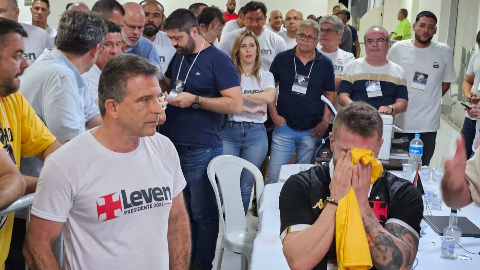 Durante a tarde, a chegada do presidente Jorge Salgado e de Faues Cherene Jassus, o Mussa, ex-presidente da Assembleia Geral do Vasco na gestão de Alexandre Campello, acirrou os ânimos no Calabouço. Apoiadores de Leven Siano vaiaram e hostilizaram os dois. Salgado reagiu e respondeu com o gesto de uma “banana” com os braços cruzados.
