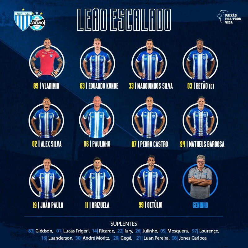 Sem informações de local, horário ou rodada na imagem, o Avaí se limitou a focar só o time titular (com uma diagramação no mínimo irritante). Pelo menos os reservas ganharam um espaço. No mais, técnicos veteranos posando como jogadores marrentos: gostamos.