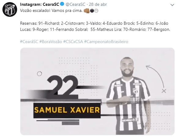 Bem como o Athletico Paranaense, o Vozão usa o vídeo para dar um toque de modernidade ao anúncio da escalação, mas mantém as mesmas lacunas: não contempla as informações primordiais da partida, não mostra quem é o capitão e nem passa perto de trazer a disposição tática da equipe — os reservas são citados apenas no texto. Os jogadores com um filtro de opacidade também ficaram estranhos, mas as animações são legais.