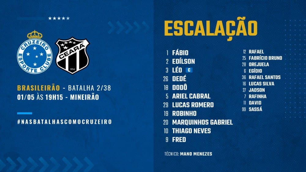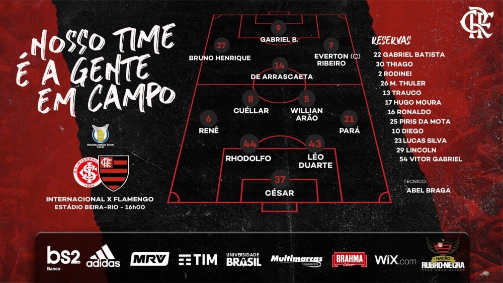 Uma das peças que mais beira a perfeição. Disposição tática, numeração, banco de reservas, horário, data e local — mal precisa do texto de apoio no tuíte. Para ser um 10, faltou só lembrar o número da rodada e o canal que vai transmitir o esquadrão.