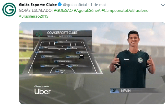 O Goiás criou um layout em vídeo que lembra bastante uma transmissão na TV, e isso é tanto um pró quanto um contra dessa peça. A animação é moderna, fluida e até dá um senso de interatividade, mas é aquela coisa: para descobrir qual é o time, você precisa esperar uma pequena abertura de filme da Marvel terminar. No mais, não traz quase nenhuma informação essencial sobre a partida além do time titular.
