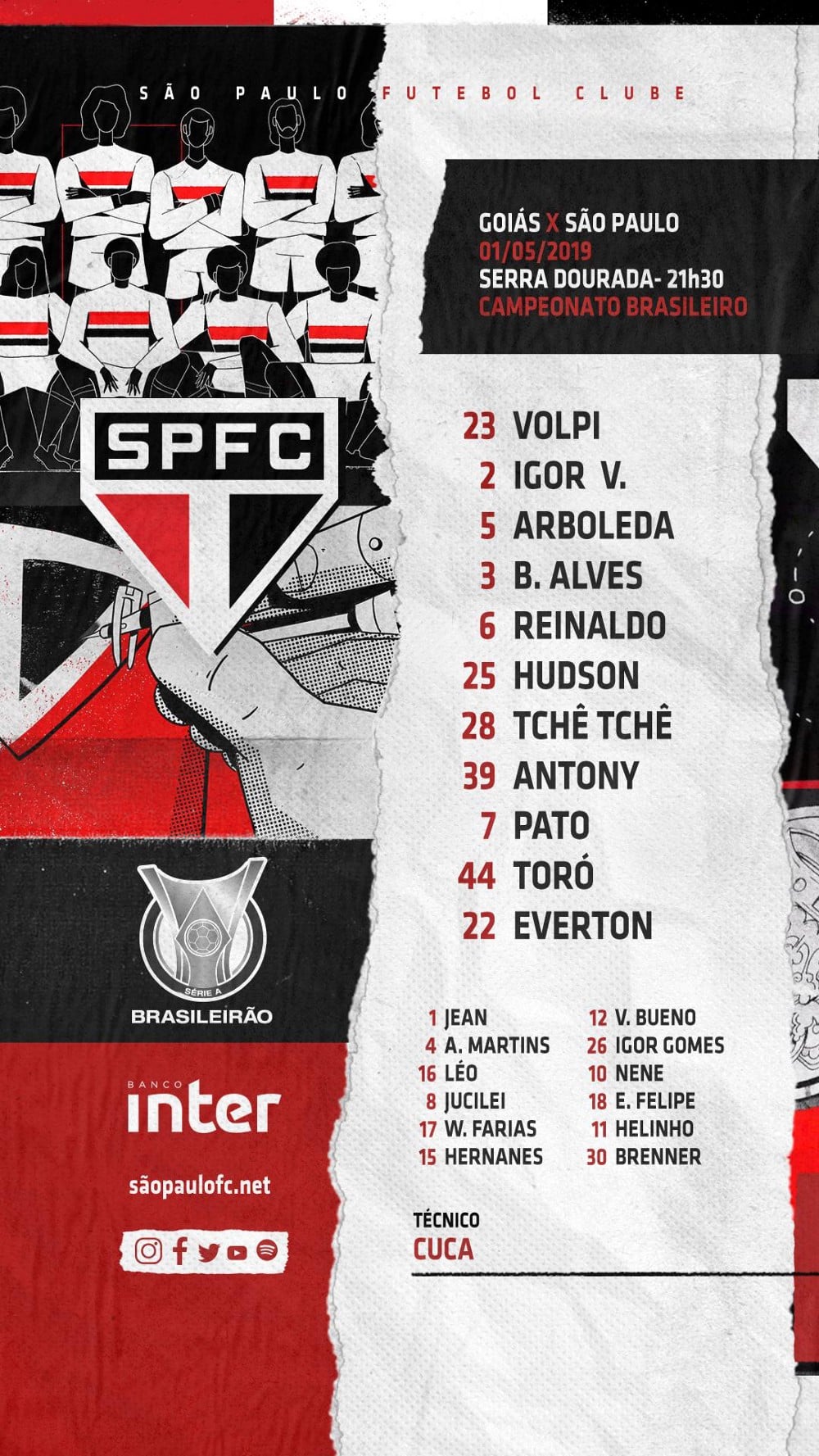 A peça do São Paulo talvez seja a mais bonita do campeonato em termos de construção visual, mas o formato retangular não é o ideal para as redes sociais (exige o clique, como o Goiás). Das informações, ficam faltando o número da rodada, o capitão e a formação. Foi quase.