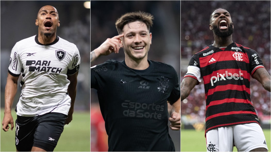 Melhores atacantes: Estêvão (Palmeiras), Yuri Alberto (Corinthians) e Luiz Henrique (Botafogo)