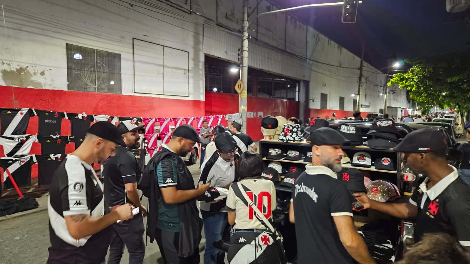 É lá que André Guedes vende acessórios do Vasco. Especificamente, para a cabeça, feitos pela sua marca “Desbravador Cruzmaltino”. Bonés, chapéus (ou “buckets”) e, agora, as boinas. E a ideia de vender o objeto não veio simplesmente por ter visto Álvaro Pacheco os usando. Veio também da semelhança física entre o vendedor e o técnico português. Quem alertou foi um amigo.