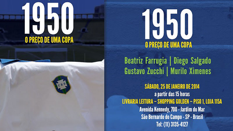 A Copa de 1950 não foi apenas o gol de Ghiggia que calou o Maracanã. Houve seis cidades-sedes, promessas e politicagem, além de futebol. Tudo isso foi reunido no livro “1950: O Preço de uma Copa”, que será lançado neste sábado. Quem quiser conferir, veja abaixo o convite do lançamento.