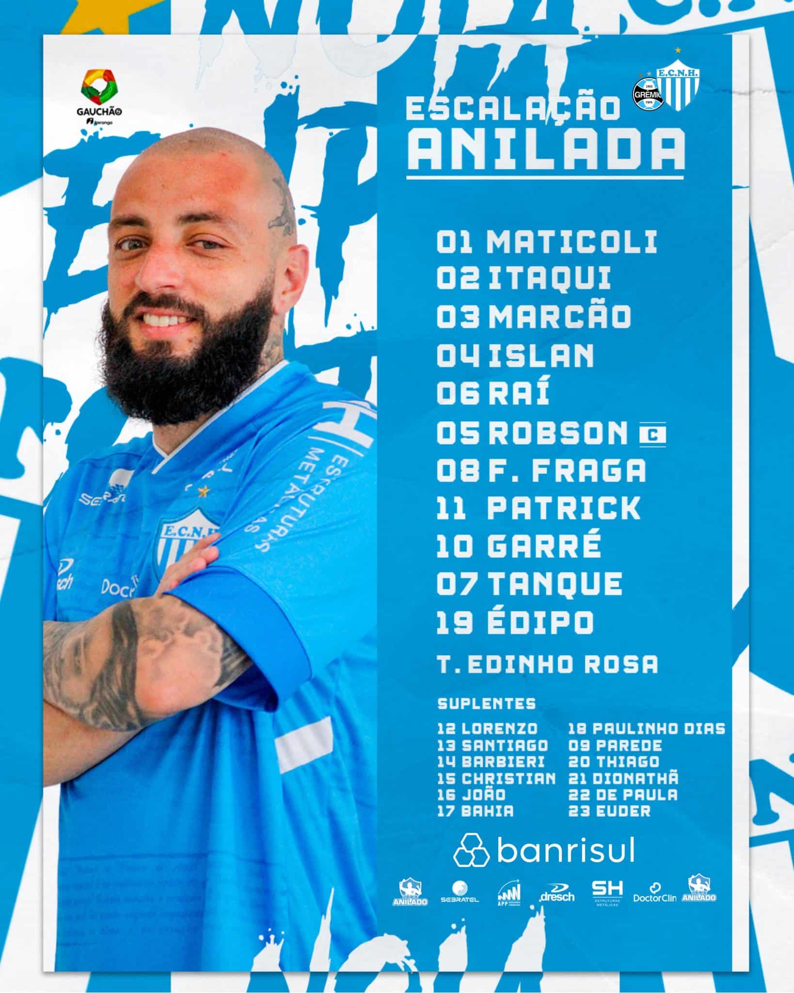 Sem Anílson, suspenso o Novo Hamburgo iniciou com Itaqui na lateral direita. Na abertura do meio de campo, o volante e capitão Robson, que havia cumprido suspensão na vitória sobre o São Luiz, retornou ao time titular. No 4-2-3-1, o Anilado começou com Lucas Maticoli; Itaqui, Marcão, Islan e Raí; Robson e Filipe Fraga; Tanque, Garré e Patrick; Édipo.