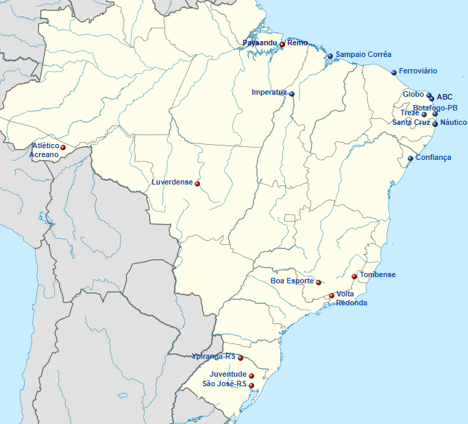 No Rio Grande do Sul, enquanto o Ypiranga permaneceu na Terceirona, o Juventude caiu da B e o São José subiu na D. São velhos conhecidos do Gauchão, ainda que o clube de Erechim sequer figure atualmente na primeira divisão. No Sudeste, enquanto o Volta Redonda permanece como único bastião do interior do Rio de Janeiro, Minas Gerais se beneficia dos investimentos de empresários em Tombense e Boa Esporte. No Mineiro, aliás, o Boa eliminou a equipe de Tombos nas quartas de final. Mais ao norte, o Luverdense também possui um investimento considerável, apesar do rebaixamento na Série B há dois anos. É o único encravado no Centro-Oeste, no norte de Mato Grosso. E o Atlético Acreano, o mais ocidental da chave, pede passagem por seu retrospecto recente. A agremiação acumula o acesso na Série D, o ressurgimento no estadual e a boa campanha na Terceirona de 2018 – que entrou em declínio justamente no momento quando não poderia.