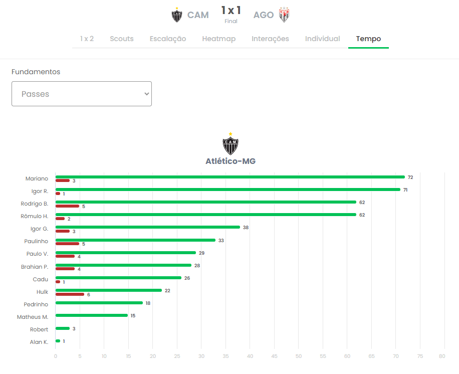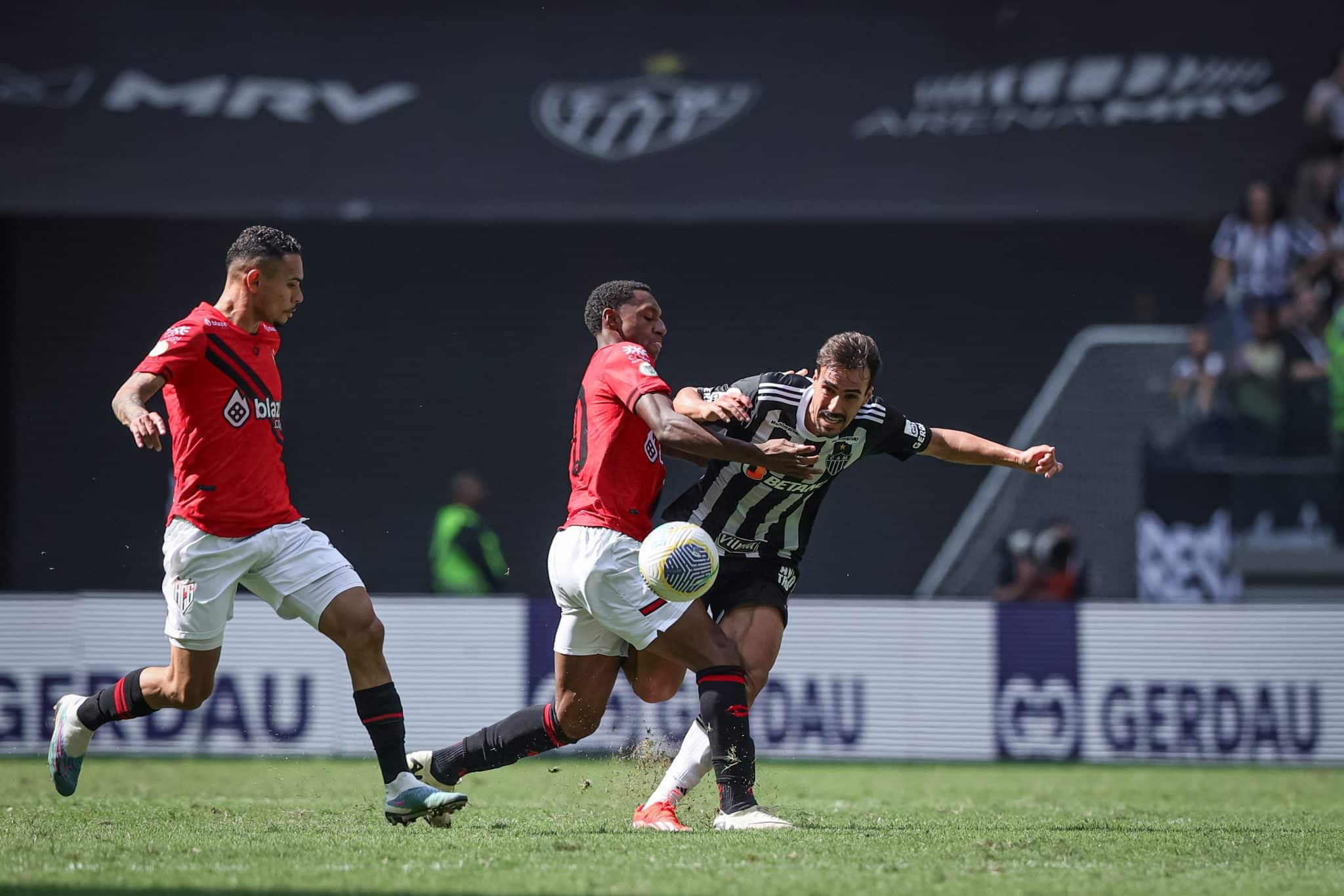 Com o time completo, o Atlético parecia mais dinâmico, rodava a bola mais rápido, tinha mais tabelas, mais infiltrações e, principalmente, algo diferente. Seja dos pés de Scarpa, Arana, Hulk ou Zaracho, iniciavam-se jogadas ou saiam passes “inesperados” que decidiam os jogos.