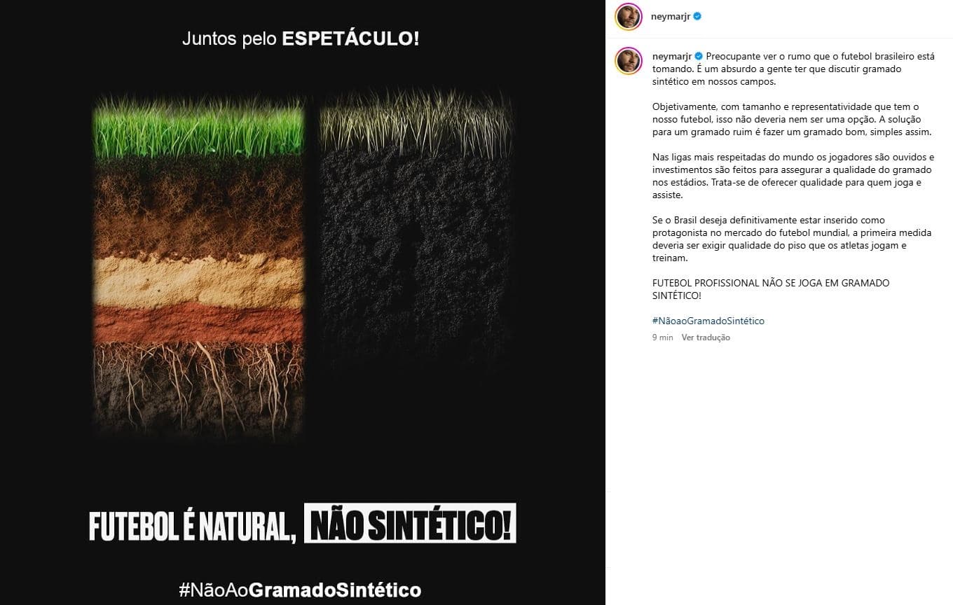 Nesta terça-feira (18), nomes como Neymar, Phillipe Coutinho, Thiago Silva, Lucas Moura, Gerson e Gabigol publicaram um texto em que pedem o fim dos campos de grama artificial no futebol brasileiro.