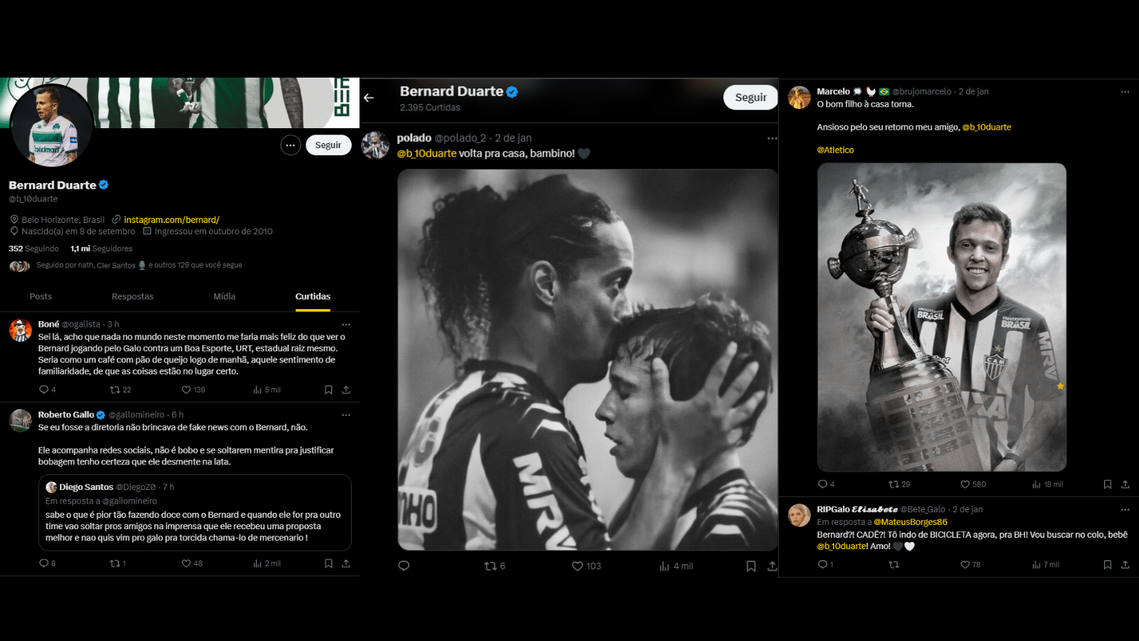 Mas vale destacar que Bernard não ser prioridade para o Atlético, não quer dizer que o clube não queira contratá-lo. É desejo, sim, do Galo repatriá-lo, desde que ele se encaixe nas condições financeiras que o clube pode oferecer hoje. Nas redes sociais, o jogador vem curtindo algumas postagens que falam da volta dele para o Alvinegro.