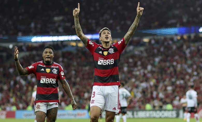 A primeira escalação de Jorge Sampaoli no Flamengo tinha Santos no gol, além da zaga formada por Fabrício Bruno, David Luiz e Léo Pereira. O meio-campo contava com Marinho e Ayrton Lucas bem soltos nas alas, além do meio com Vidal, Thiago Maia e Gérson. Na frente, Gabigol e Pedro voltavam a se combinar. Repetia-se um sistema que não era novidade em relação aos tempos de Vítor Pereira, mas com algumas escolhas distintas.