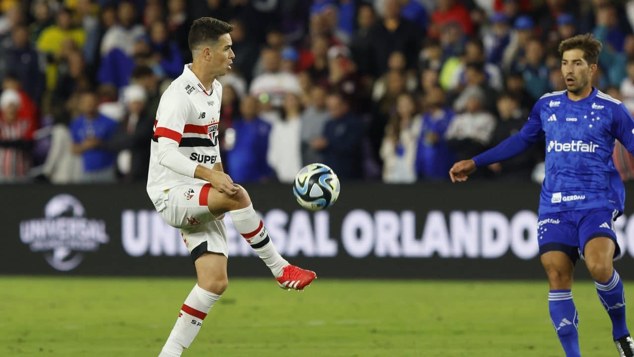 Logo nos primeiros minutos, o meia encontrou Calleri dentro da área com um lançamento por cima. Depois, ele ainda achou o centroavante com mais um passe vertical, mas a zaga foi bem na cobertura.
